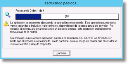 Posteriormente, deberás confirmar la generación de facturas y verás la siguiente ventana que indica que se está llevando a cabo la facturación: